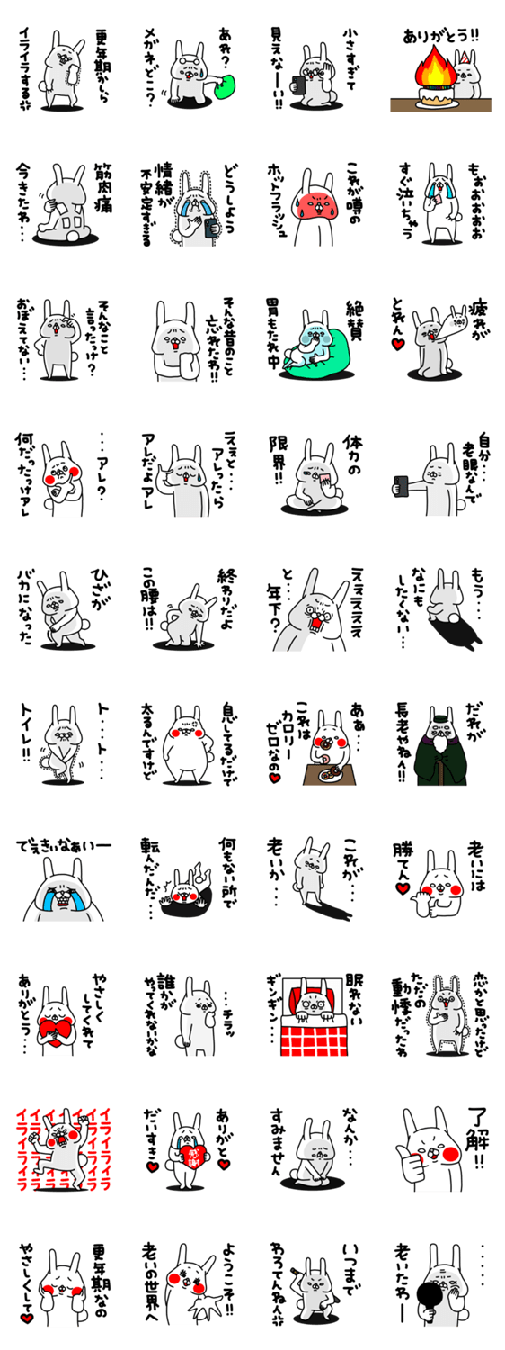 全力でうざい全力でおちょくるあざとかわいいうさぎの老いが止まらない!更年期障害に老眼に腰痛・ひざ痛に物忘れに情緒不安定。老化を感じるあなたに捧ぐ優しいスタンプ