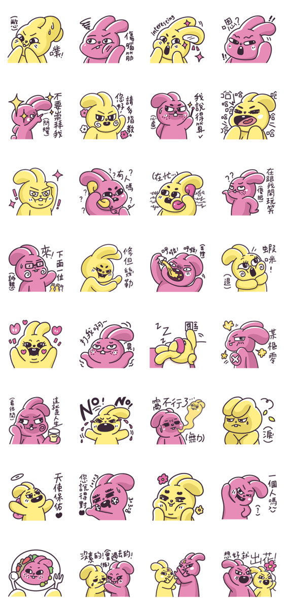 The Pink bunny is an emotional and shameless cute alcoholic!!! (The yellow bunny has worked hard qq