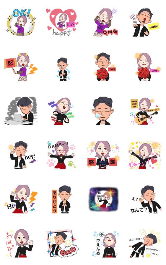 薔薇ちゃんカップルの楽しいスタンプ☆