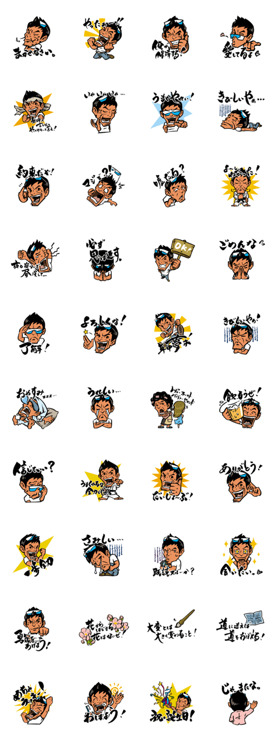 松山三四六のイラストスタンプです。あの名言や言霊、日常的な挨拶など盛りだくさん!