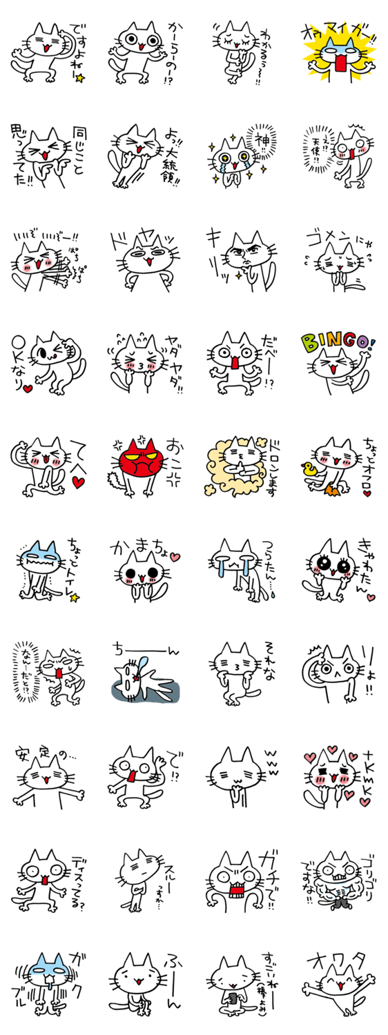 クロという名の白いネコが、楽しいメッセージを送ります。ちょっとお調子者。