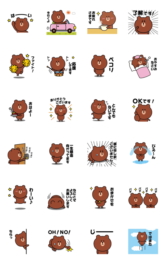 ブラウンの日常でよく使う言葉を集めたずっと使えるスタンプです♪ ※BROWN & FRIENDS をみんなでつくろう!キャンペーン参加スタンプです