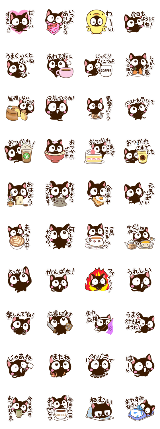 『小さい黒猫スタンプ』の相手を思い労わる【応援・気づかい】編。好きな人や、家族、友達など身近な人へ励ますことができるクロネコスタンプ。【かたこ】