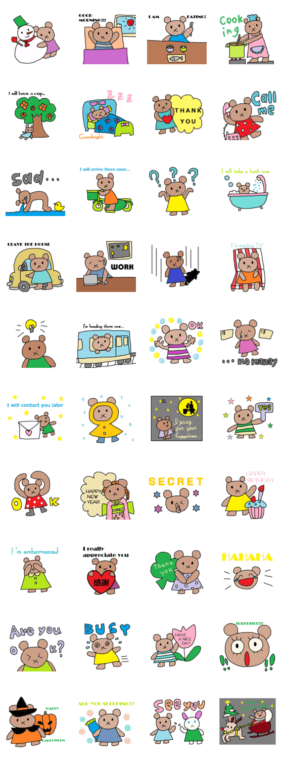スタンプ説明 彼女はジュジュです。イベントが大好きです。