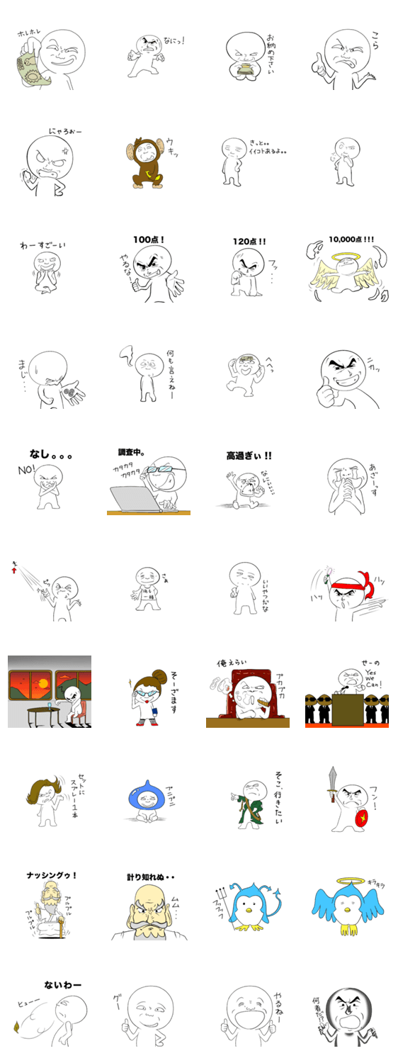 まるいおにーさんがその時の思いをいろいろなもので例えてわかりやすく伝えるスタンプ。