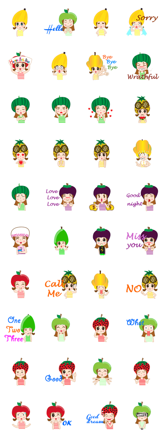 In the world of girls, filled with fruit,Send the cheeky characters to your friends and they'll be sure to bring healthy smiles to everyone.