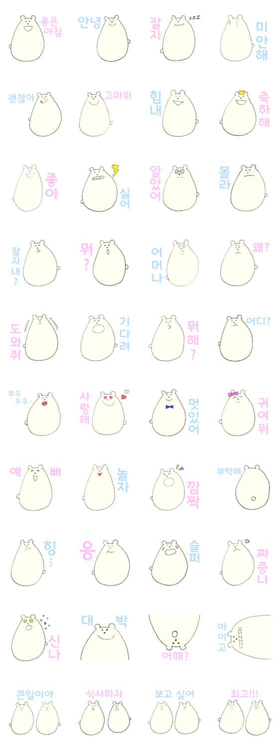 くーたろというしろくま。ほんわかした、ゆるーいくーたろの韓国語。