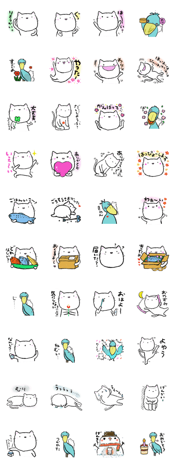 | スタンプ説明 | 見守りねこのねころんと、ハシビロコウの楽しいゆるいスタンプです。 |