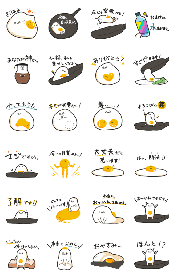 白身くんと黄身くんが、日常でわりと使う言葉を発しています。 たまに個性的な一面があるかも…?
