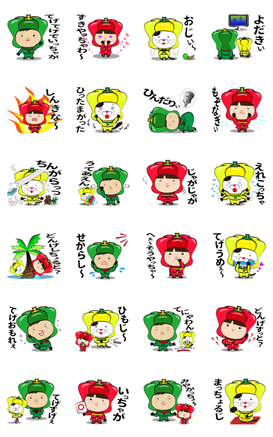 宮崎県西都市の名産カラーピーマンがレンジャーになって宮崎弁スタンプになりました。