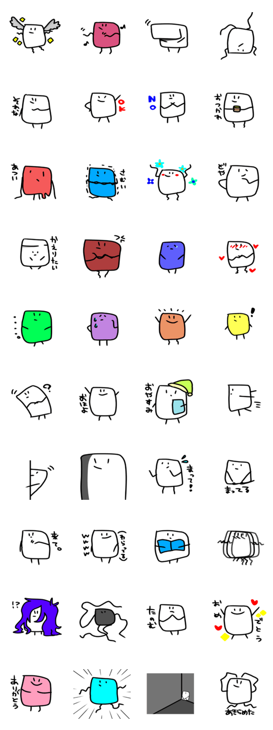 消しゴムでも豆腐でもない変な生き物です。手足が沢山伸びます。あなたのトークに住ませてあげてくださいな。
