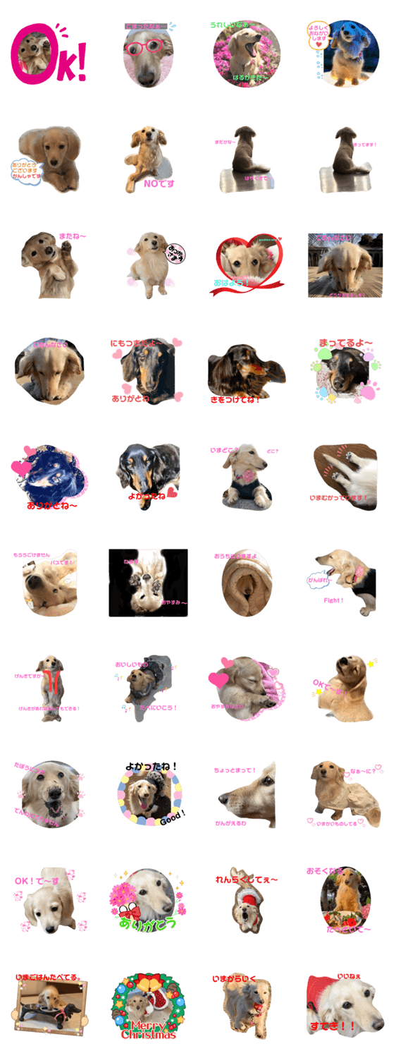 | スタンプ説明 | ダックスフンドのリリ1才〜3才 風15才の写真でつくりました。 |