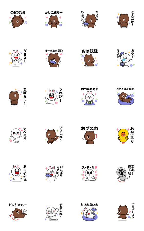 | スタンプ説明 | ブラウン/コニー/サリー/ムーン/LINEキャラクターズ/毎日使える/日常会話/挨拶/大人向け/笑える/おもしろ/言葉/ワード/センス/流行語/方言/スラング/ダジャレ/オヤジギャグ ※BROWN & FRIENDS をみんなでつくろう!キャンペーン参加スタンプです |