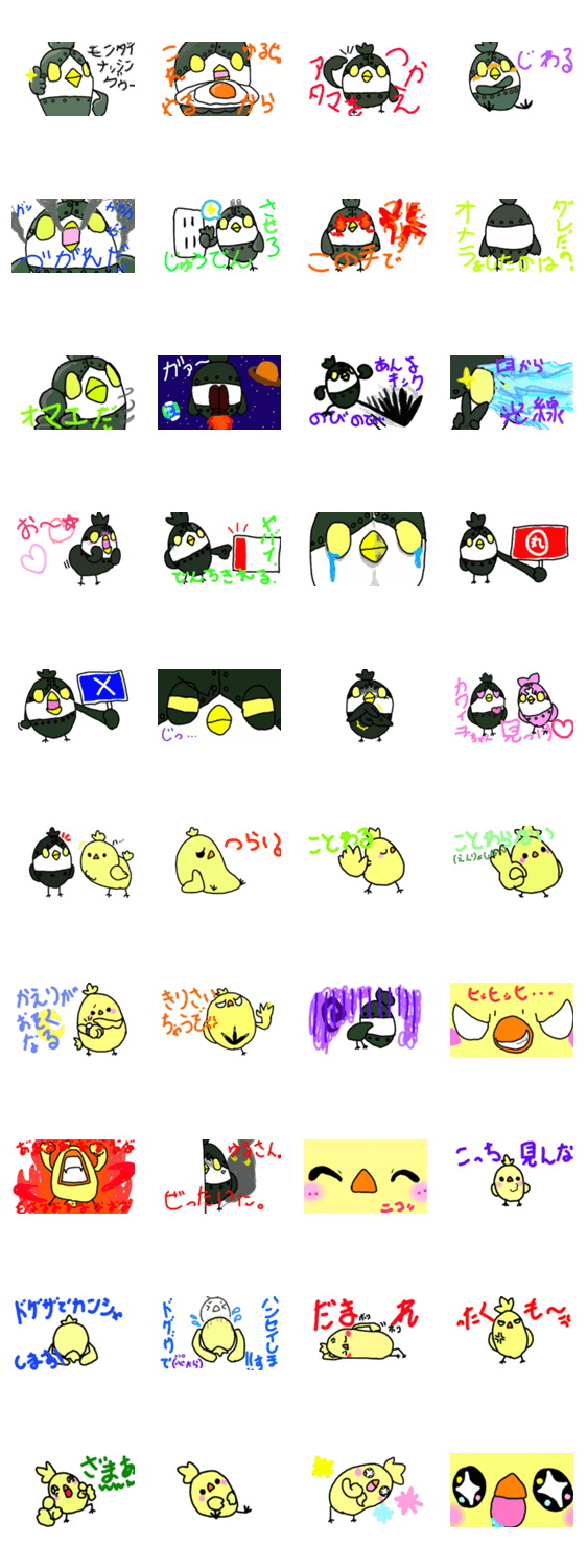 ヒヨコの未来の姿、その名もロボピヨ。使えそうなスタンプが40個。ロボピヨは電気で動くロボットです。充電をこまめにしてください。