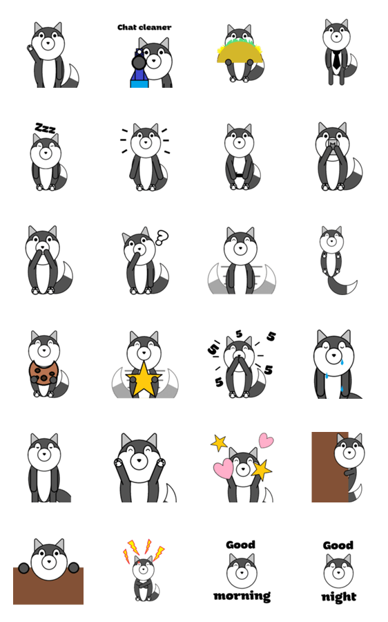 | スタンプ説明 | Adorable wolf loves to eat, work, and most of all, vibe. Let this adorable wolf brighten your chats! |