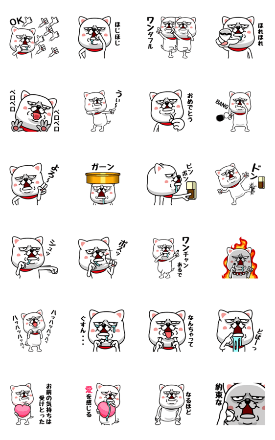 白ネコのあいうえお・・・ってるスタンプ