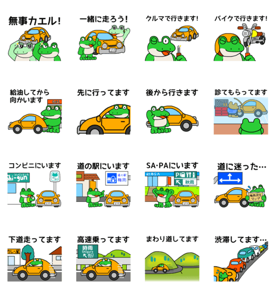 | スタンプ説明 | しぐれ君クルマスタンプ登場!クルマ仲間と使い合い…今日も安全運転で〜 |