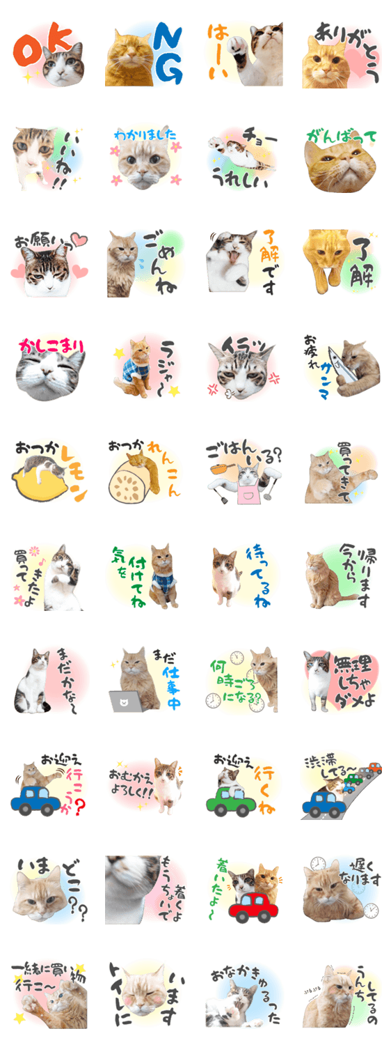 トラ猫&ハチワレ猫の日常生活に使えるスタンプ。家族連絡用スタンプです。