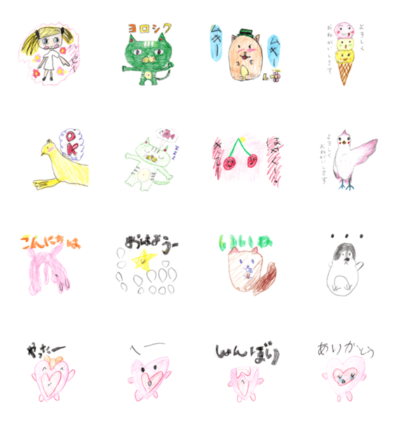 未来型デザインレッスン生徒さんのちかちゃんとママが作ったスタンプです。みんなで使ってね!