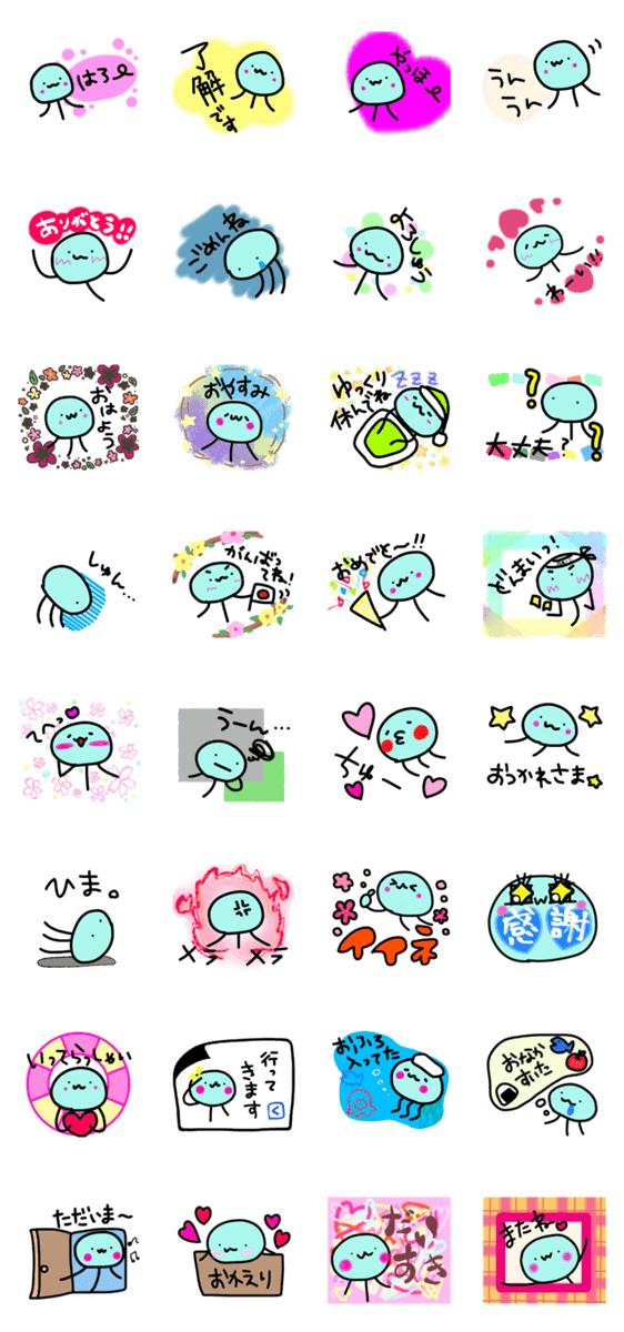 カラフルで可愛いくらげちゃんの使いやすい挨拶スタンプです