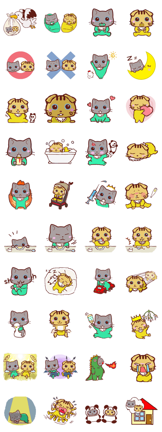 むむこまが赤ちゃんになっちゃいました♪ 赤ちゃんの日常をスタンプにしました。 猫好きだけじゃなく、赤ちゃんの居る パパ、ママにも使って欲しいです