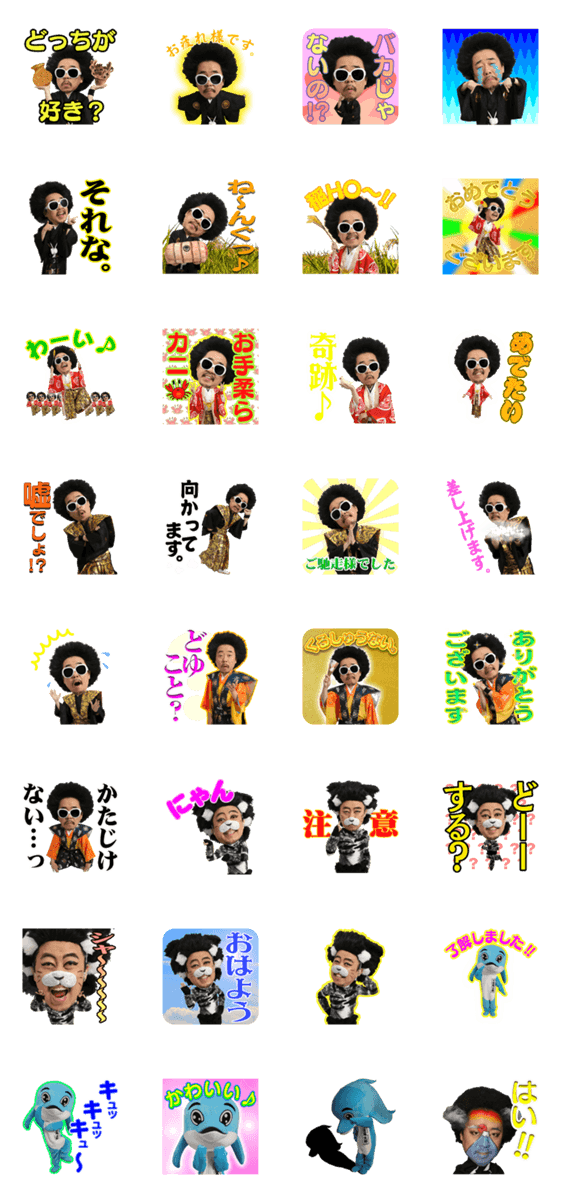 レキシの実写スタンプがついに登場!!レキシならではの独自スタンプでトークルームを稲穂色に染めちゃおう♪普通の着物と猫、イルカ編