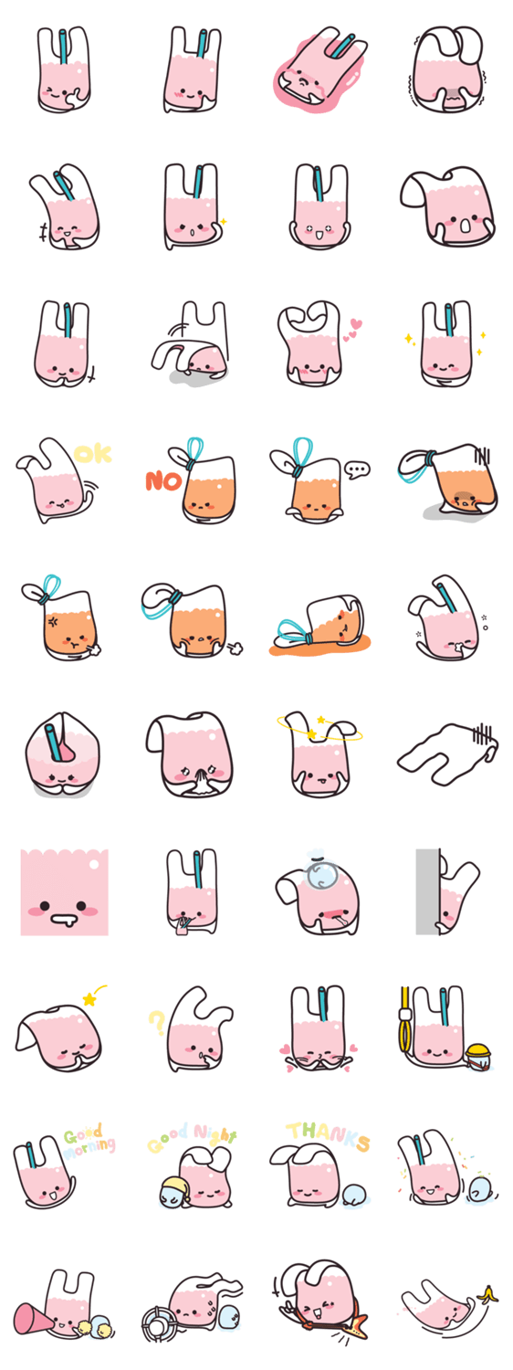 | スタンプ説明 | "NAM THUNG" the Sweetest soft drink in plastic bag, and here he comes with his cute friends to CUTE your chat! |