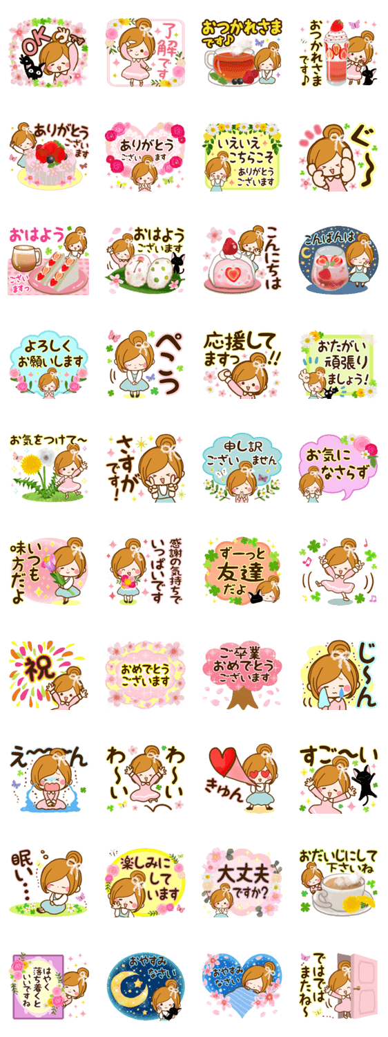 お花がいっぱいで華やかな、大人かわいい気づかい敬語スタンプです♡日常便利な言葉がいっぱいです♪卒業、入学祝い、ママ友、お仕事にも★ 「ほのぼのカノジョ」シリーズ