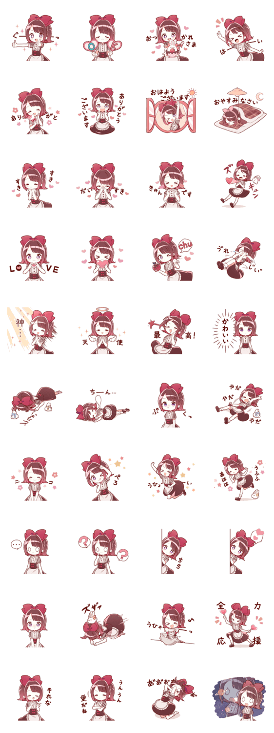 「白雪姫」をモチーフにした、可愛いもの好きでちょっぴり暴走しがちな女の子。日常で使いやすく、恋人や推しのいる方にピッタリ♪感謝やハートが多めでバレンタインにも◎