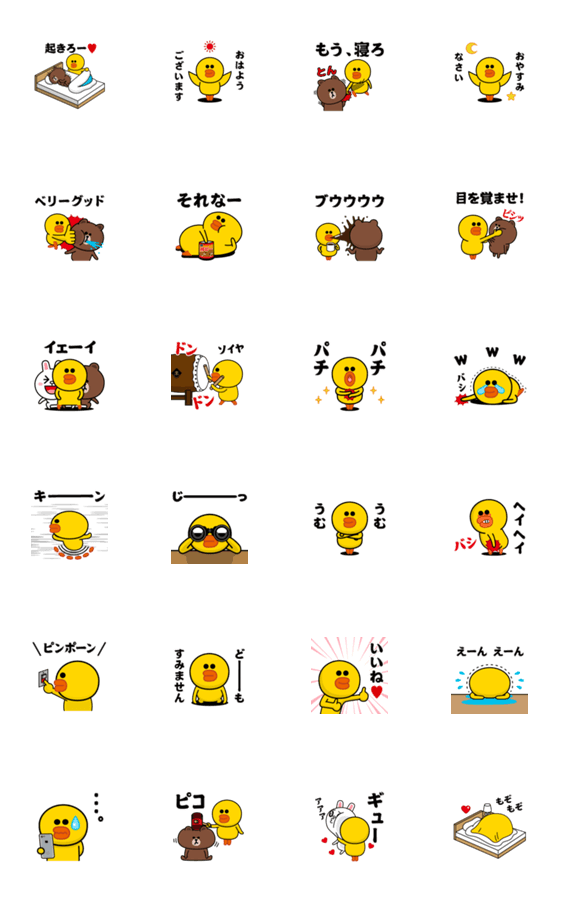 | スタンプ説明 | ブラウン&フレンズ/コニー/サリー/ひよこ/雛/ヒヨコ/鳥/とり/鶏/トリ/LINEキャラクターズ/毎日使える/挨拶/日常会話/男女/ペア/パートナー/カップル/恋人/家族連絡 ※BROWN & FRIENDS をみんなでつくろう!キャンペーン参加スタンプです |