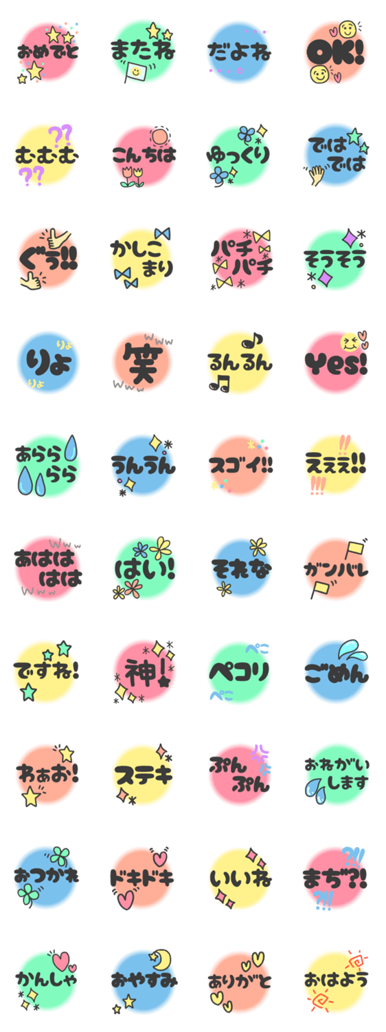 よく使う言葉、フレーズをカラフルでシンプルなスタンプにしました!