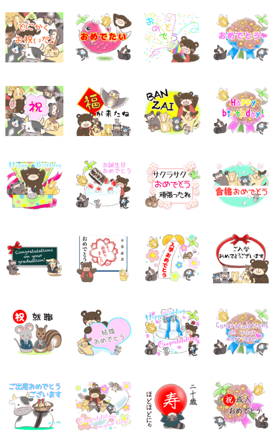 なかよしanimals おめでとうだらけsticker -LINEスタンプマニア