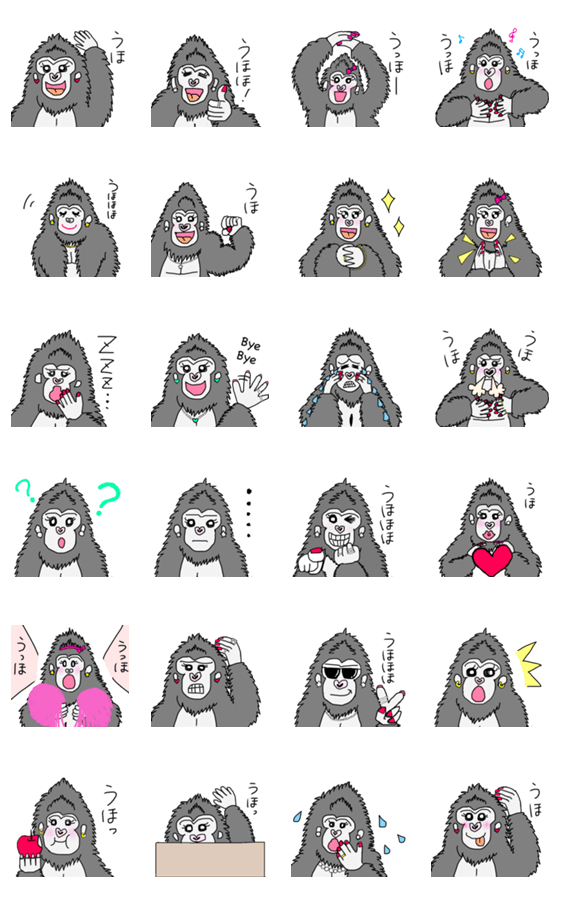 おしゃれなメスゴリラのスタンプです。 うほうほver.