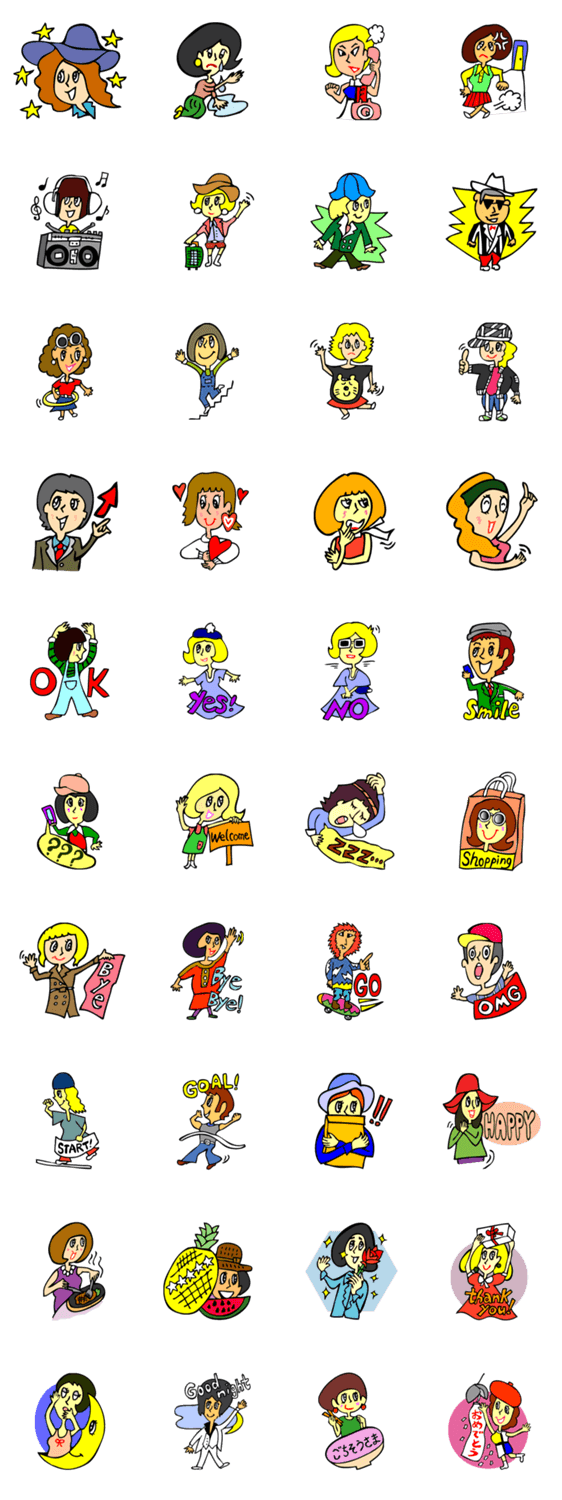 ポップでかわいい60年代70年代80年代のファッションイメージを取り入れたレトロチックで表情豊かなスタンプです。