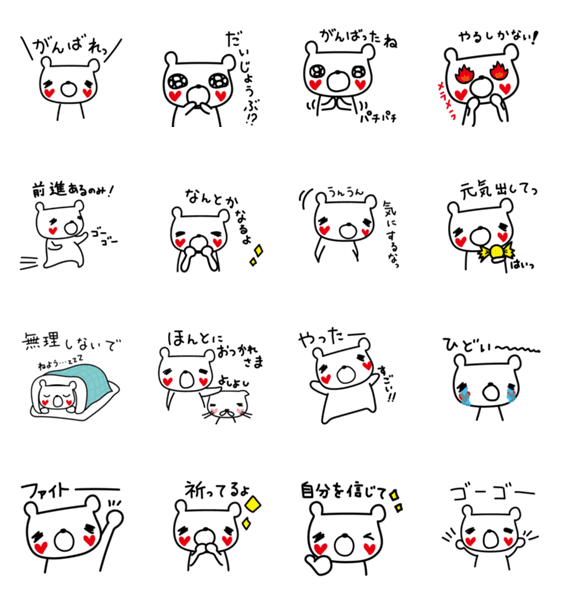 ゆるくまちゃんが応援してくれるスタンプです。 いつもニコニコしているゆるくまちゃん。たまに目が点になる時があるよ。是非ご覧ください。