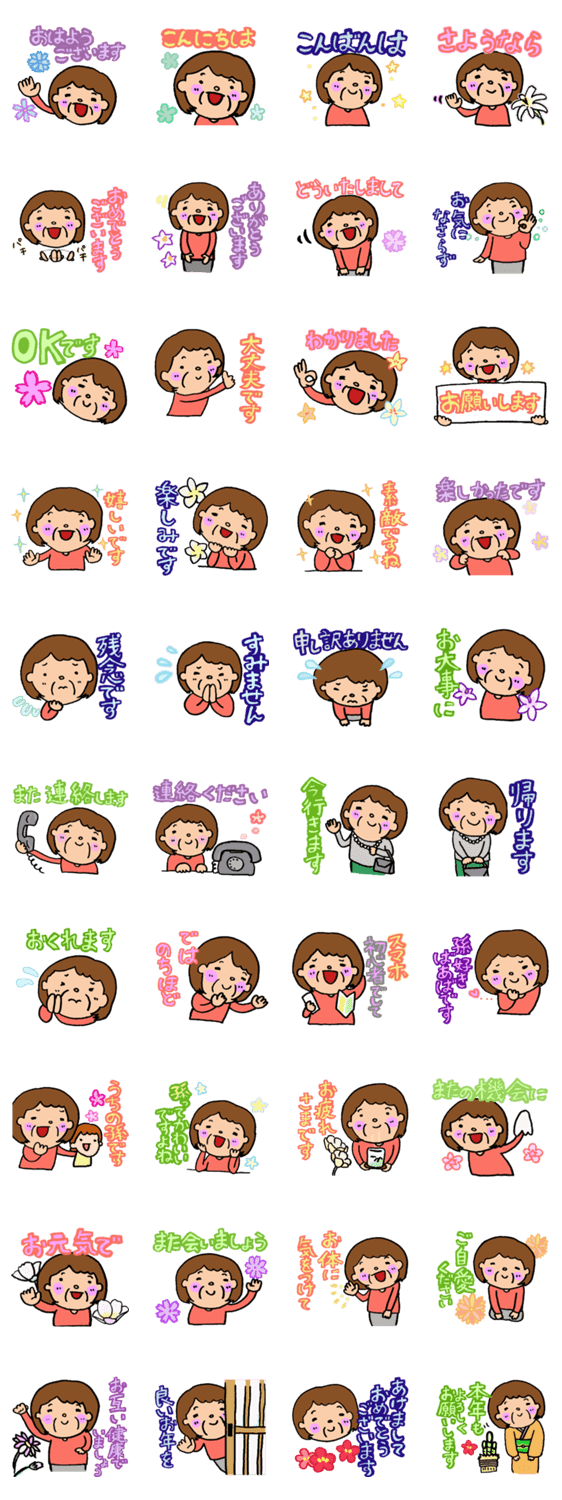 若いおばあちゃん向けの挨拶スタンプです。敬語、丁寧語、結びのあいさつ、お返事などに使えます。お孫さんも紹介してください!年末・お正月にも【孫好きばあば③】
