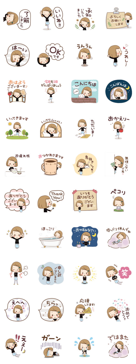 前髪短めな女の子の大人可愛い♡敬語のスタンプです♪