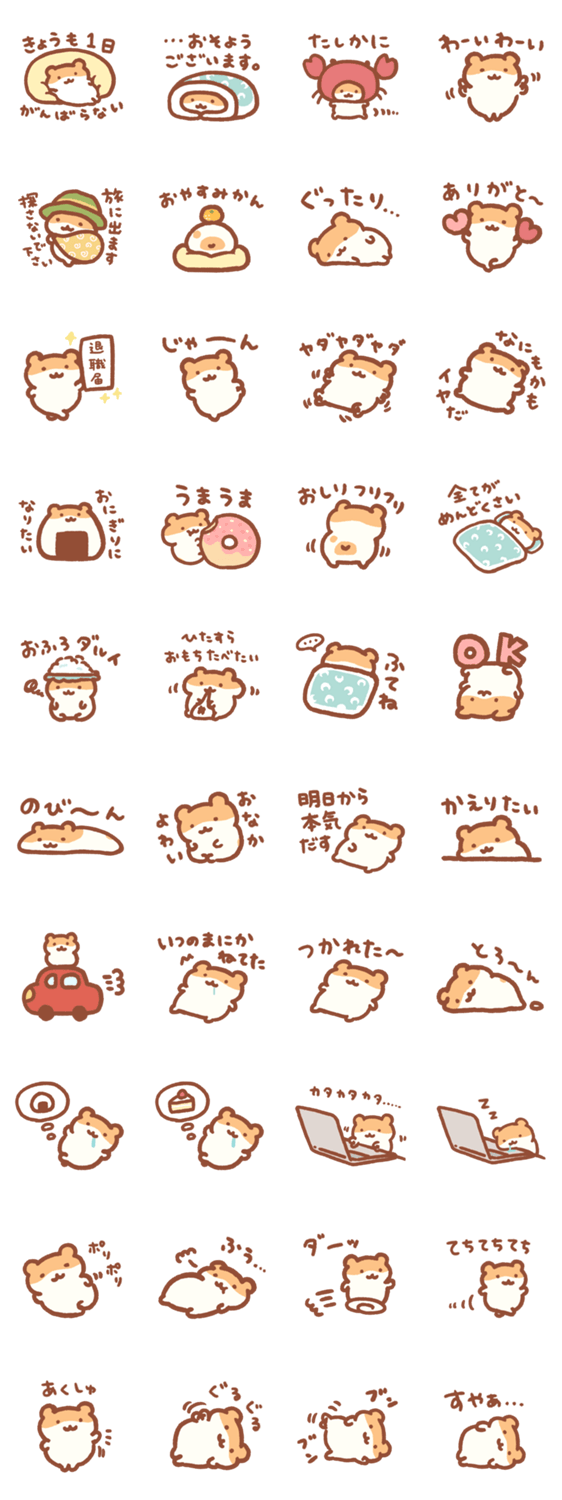 ハムスターすやはむのがんばらないスタンプです。だるいとき、めんどくさいとき、人生に疲れたときになどにご利用ください_(:3 」∠)_