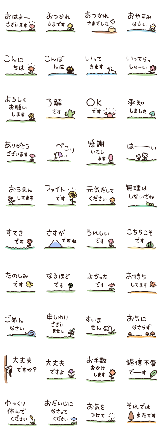 花や小動物をワンポイントに、大人が使いやすいシンプルな敬語のスタンプです。