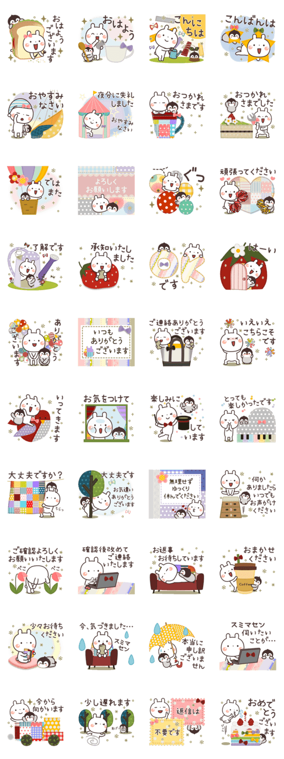 大人可愛いうさぎとゆるぺんの毎日使えるお仕事敬語スタンプです♡働くOLさん、パートさん、アルバイトさん、ママ友さん、PTAなどの連絡に使えます♪