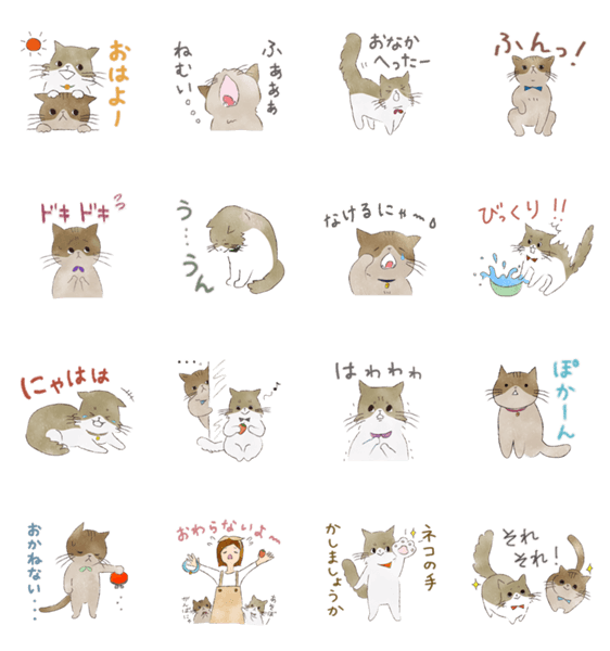 スコティッシュフォールドの八兵衛と友蔵の仲良しスタンプ第2弾です。