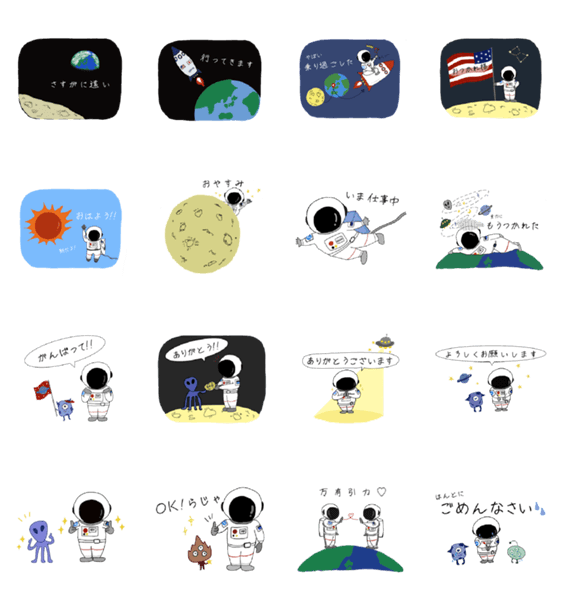 宇宙飛行士と宙の旅 日常スタンプ -LINEスタンプマニア
