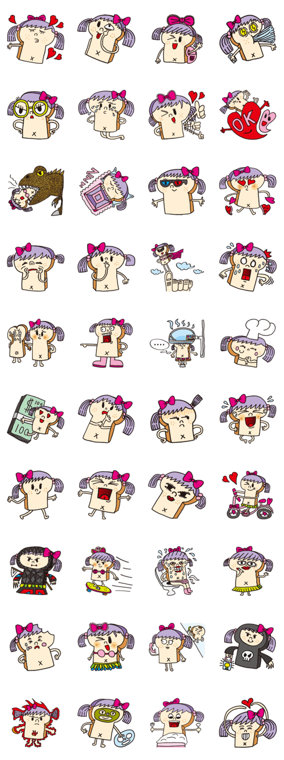 | スタンプ説明 | 8-year Jasper Huang created toast man inspired by his loving father who makes breakfast with toast every morning. Now Jasper creates another lovely "Toast Lady" |