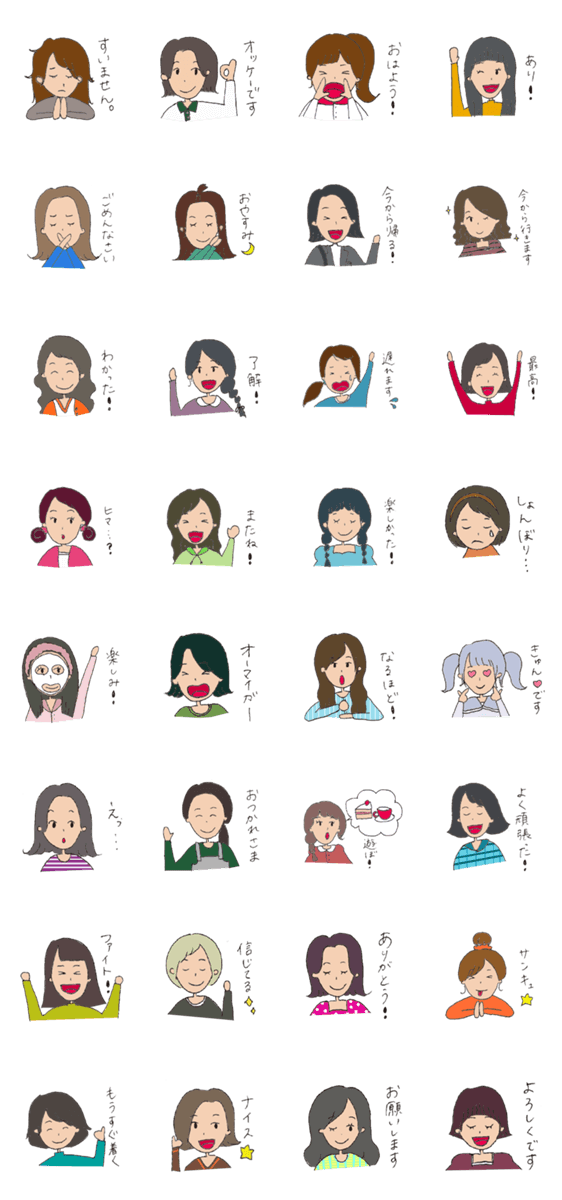 いろんなかわいい女の子のスタンプで日常会話を楽しもう。