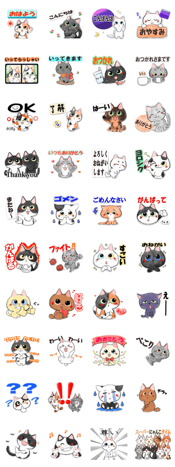 シール風の猫スタンプです。ペタペタ貼って使ってください。