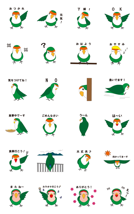 かわいい緑の小桜インコ -LINEスタンプマニア