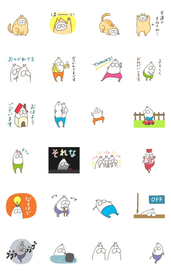 ねこタイツの動くスタンプです。元気よく動きまわるねこタイツと一緒にユーモアにあふれた楽しい日々を過ごしましょう。