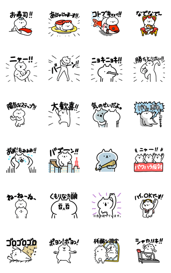 白ネコのあいうえお・・・ってるスタンプ