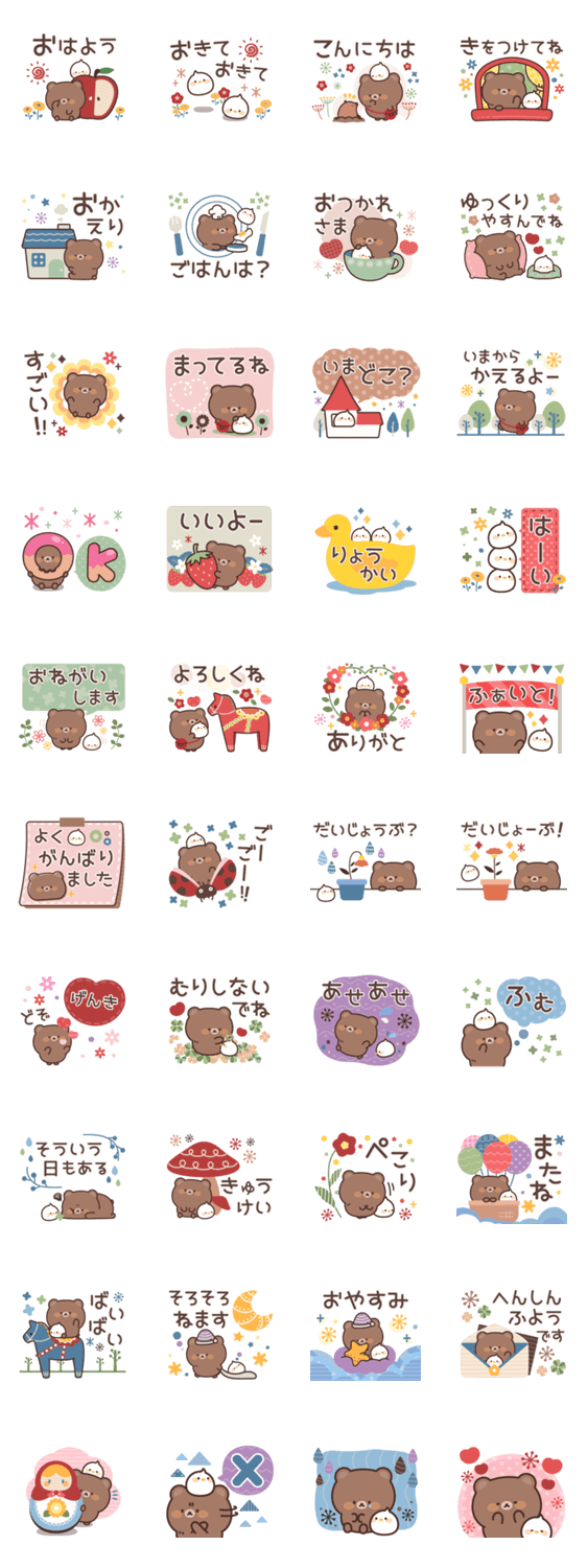 のんびりとしたクマさんの気づかいを中心に、北欧風デザインで誰にでも使いやすいスタンプです♪