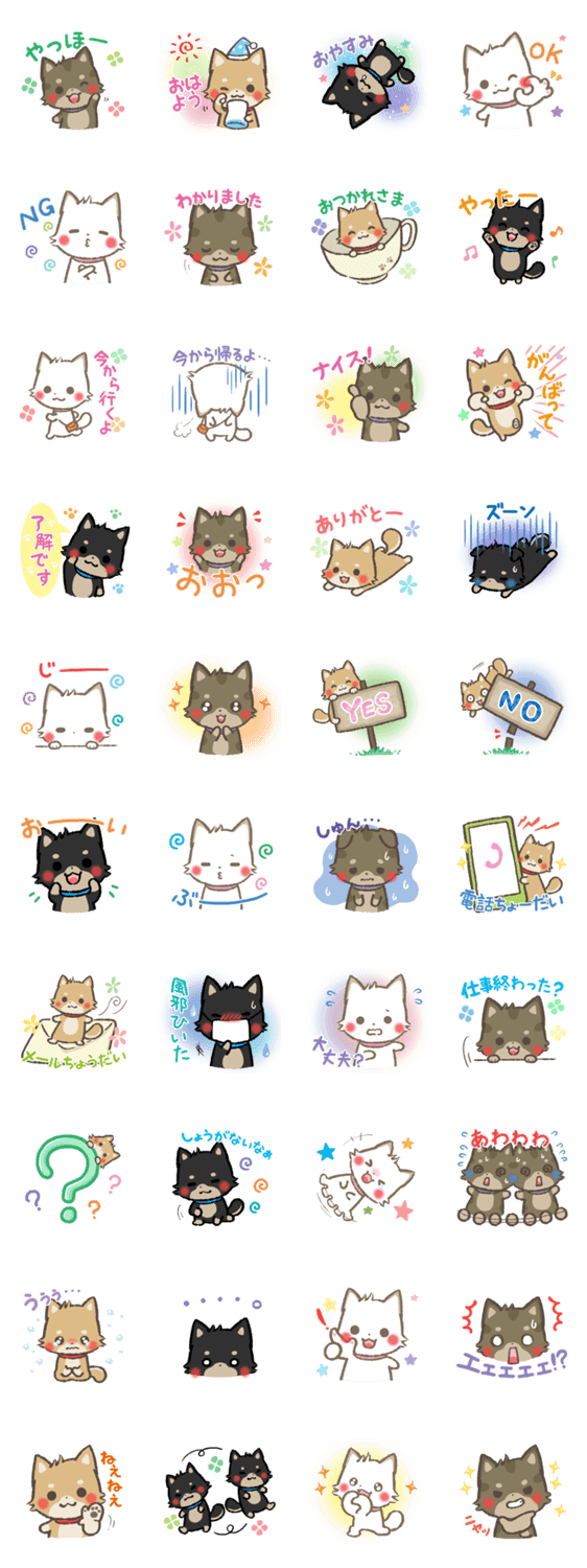 柴犬兄弟がさらにパワーアップ!白柴と胡麻柴の友達も登場!もっともっとゆる〜い気持ちを伝えたいときに使ってください。